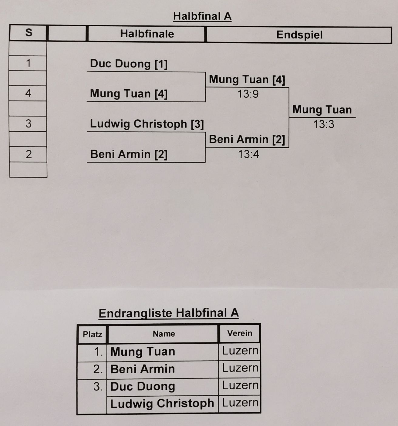 4 Vorrunden Schweizersystem.