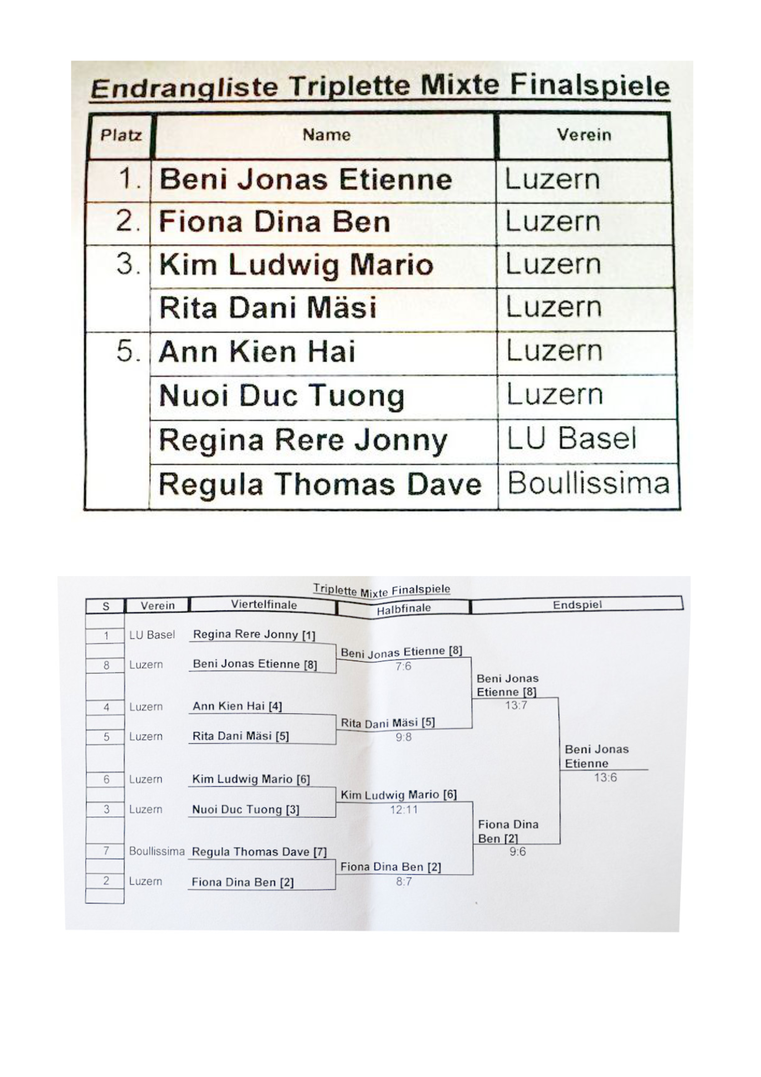 Triplette mixte, 20 Teams.