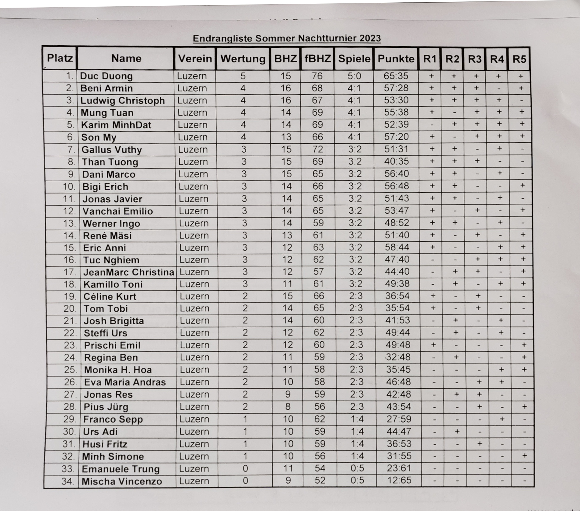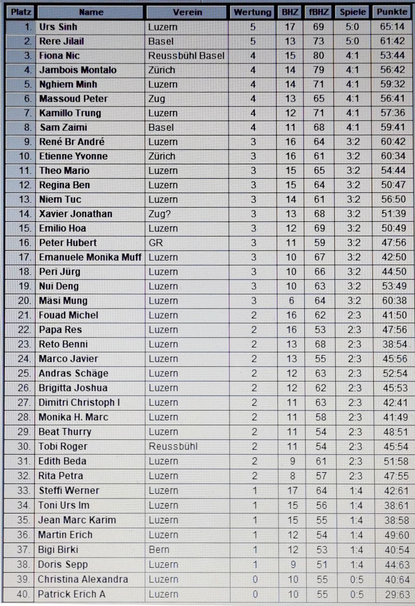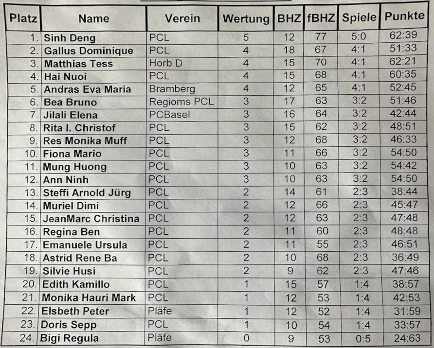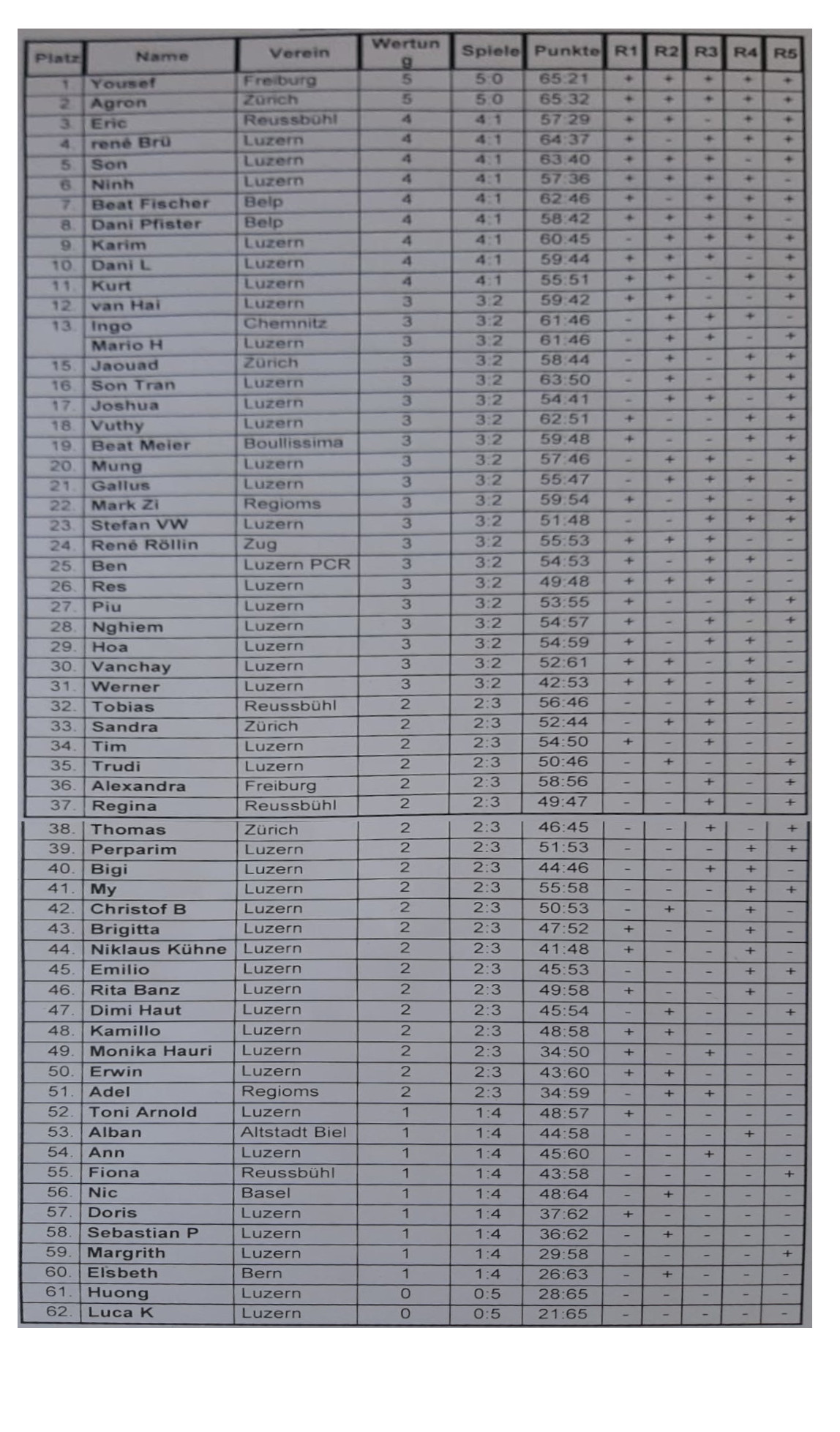 5 Vorrunden Schweizersystem.