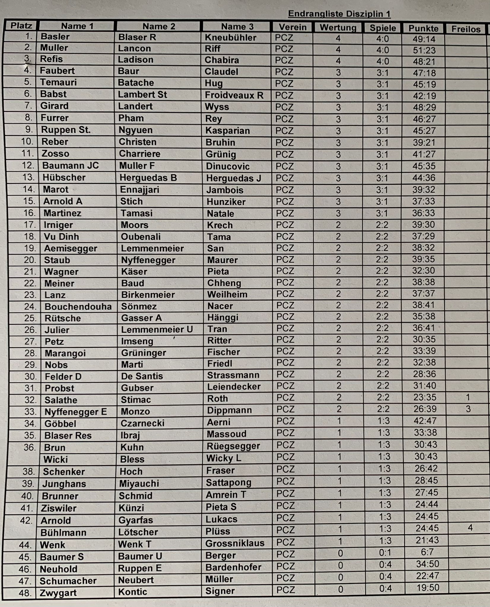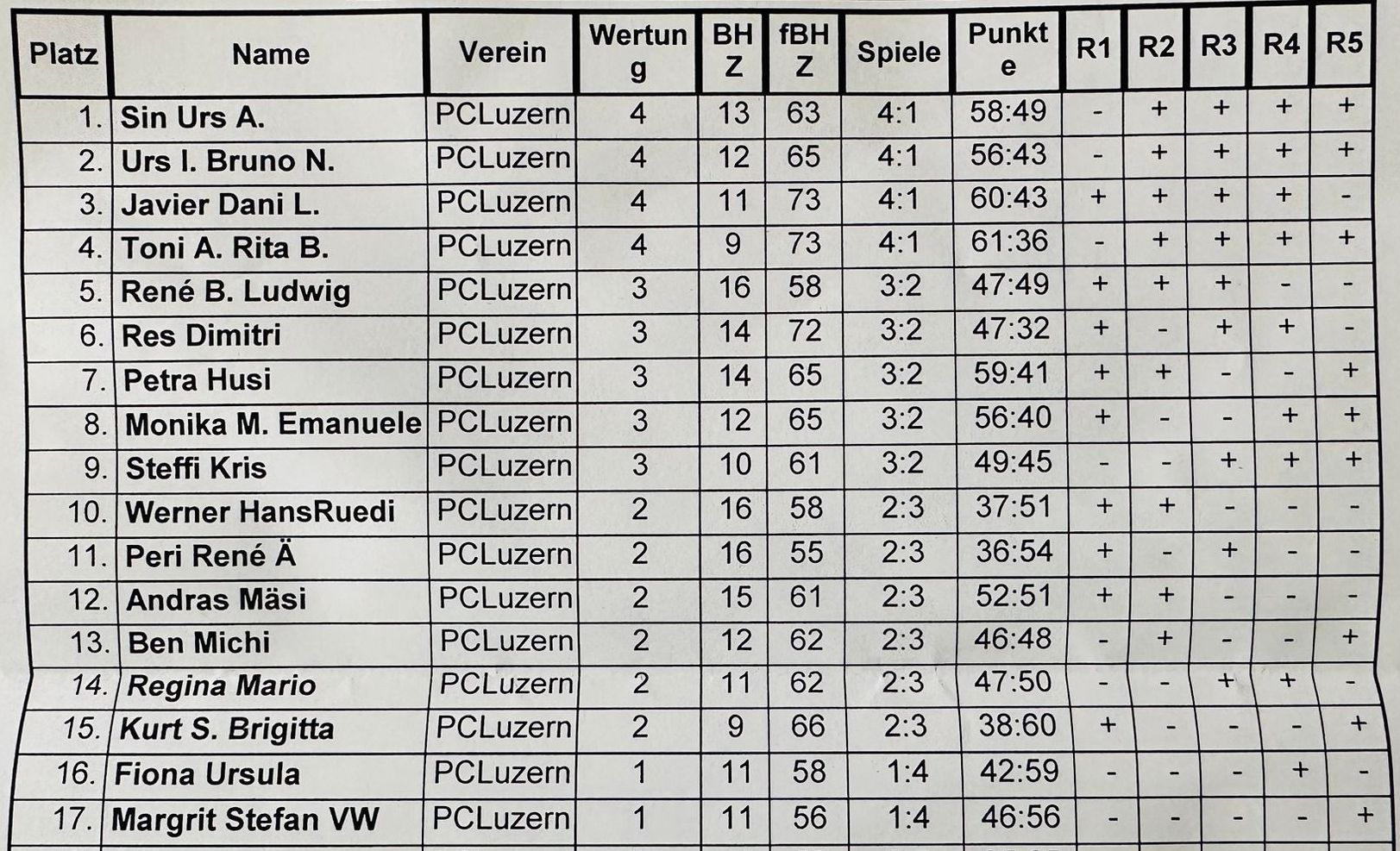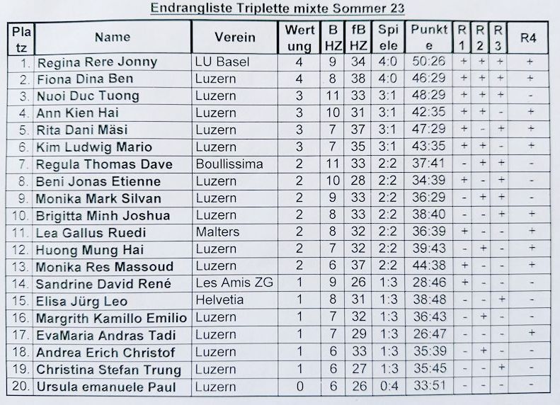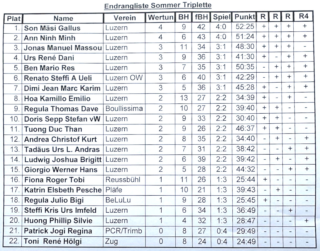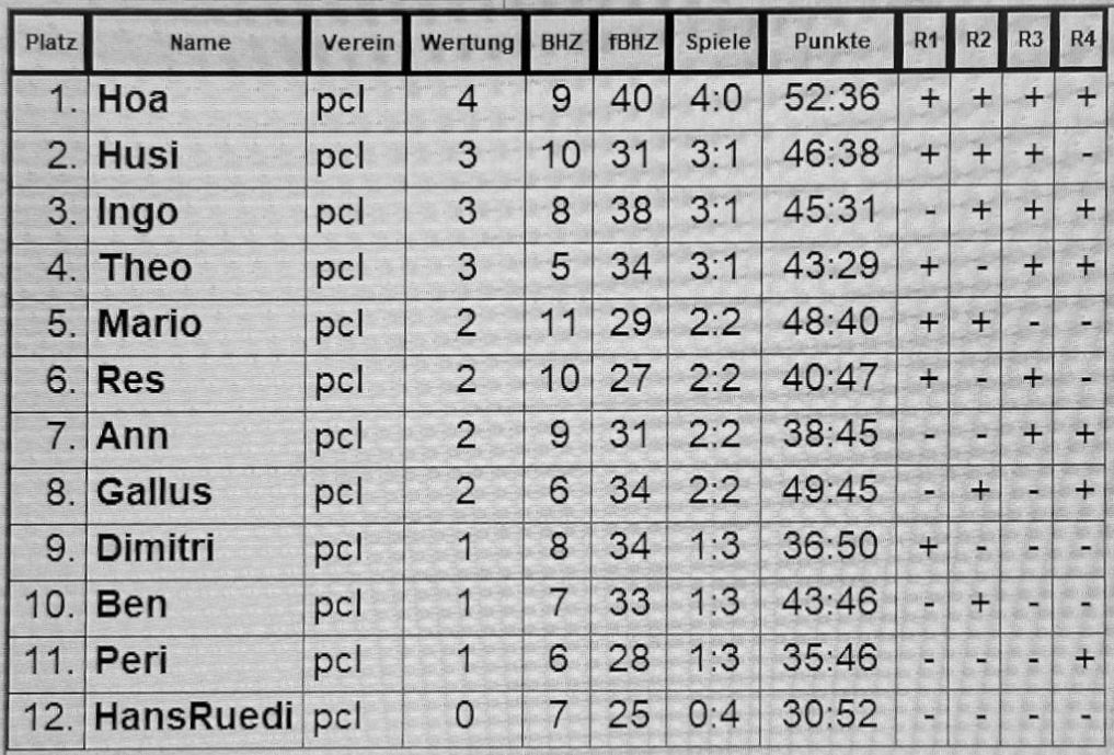 4 Vorrunden Schweizersystem.
